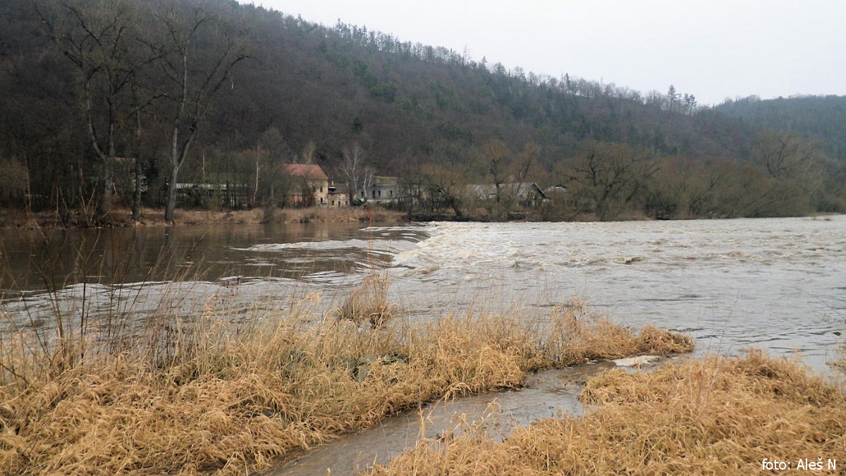 Na začátku února bylo všude dost sněhu. Po dvou dešťových dnech prudce stoupají všechny potoky a zdrojnice v povod, i samotná Berounka jde pořád nahoru. Je pátek ráno a na vodočtu ve Zbečně je průtok 154 m3/s, tj. 280 cm, což představuje 1. stupeň povodňové aktivity. Do omezení plavby za druhého stupně (320 cm) je dostatečná rezerva a navíc 280 cm byla zároveň úroveň kulminace.