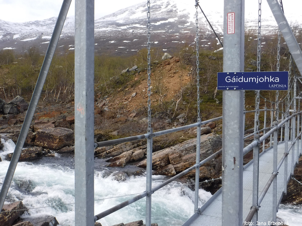 Po té Martinové splouvají tříkilometrový úsek v kajacích nalehko a užívají si panenské vody s pocitem, že mnoho vodáků tady ještě nebylo. Já si kajak odnáším na zádech až k jezeru Kaitumjaure. Vyrobila jsem si na to superspeciální postroj – koupila jsem si v Liedlu za tři stovky batůžek s dobrým polstrováním zad a našila na něj laciné popruhy. Kajak, který je dlouhý 310 cm, jsem na batoh upevnila na široko. Na volné planině se nesl dobře, horší to pak bylo na cestičce lemované břízkami.