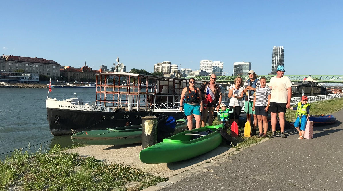 Vyrážíme 21.6. 2025 v poledne z rakouského Hainburg an der Donau asi 5 km nad soutokem Moravy s Dunajem. Jedna laminátka (Katka a Ivan), jeden plasťák (Martin, Matěj a Lada), jedna nafukovací baraka (Lenka a Pavel) a jeden packraft (Víla). Je vedro k zalknutí (asi jako před 100 lety), ale neodpustím si v úvodu krátké čtení z historické knížky, abychom uctili památku našich předků. Mám k nim posvátnou úctu za to, co všechno (pro nás) vykonali.