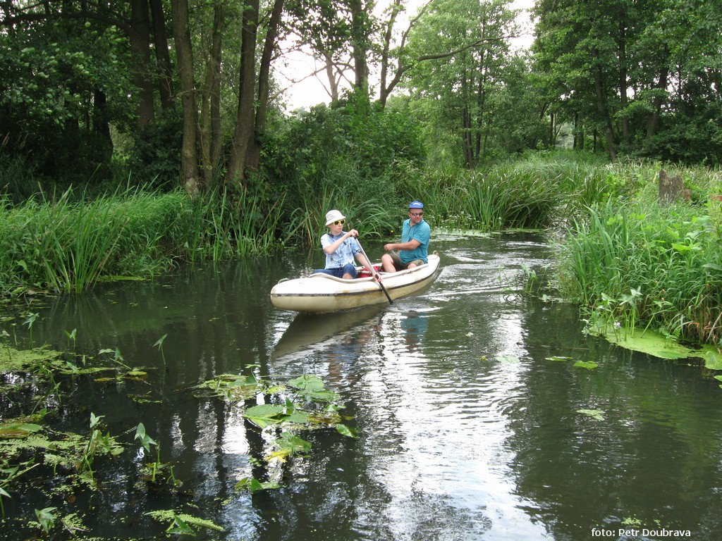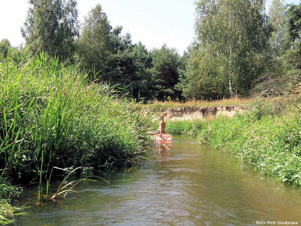 Grabia (56 km) je menší říčkou, její letní průtok na horním toku se pohybuje pod jedním kubíkem za sekundu. Trochu nás překvapila. Jsme sice zvyklí (a vždy se těšíme) na tradiční polské kvaky horních toků, kde rychlost plavby dosahuje s bídou jeden kilometr za hodinu a koryta jsou hojně zapadaná celulózou. I v tomto měřítku je ale horní Grabia opravdu na špici pelotonu. U mostu v Kužnici, odkud jsme vypluli na třídenní plavbu po říčce, vypadá ještě poměrně široká a snadno sjízdná, ale není tomu tak. K tradičním větvím, křoví a padlým stromům se přidává džungle vodních rostlin, krásných stulíků, rdestu, sítin, šípatek, zevarů a trochu méně krásného rákosí. To místy zarůstá kompletně celý profil toku. Navíc bylo po dešti mokré a tedy polehlé přímo do trasy plavby, pardon – prodírání. A k tomu je plné mšic, komárů a pavouků.