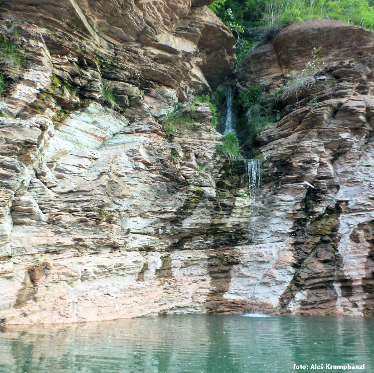 Jedeme vpravo podél pobřeží (na sever) a vpravo vplujeme do zužující se zátoky a pokračujeme jí severovýchodním směrem. Jak se postupně blížíme ke zdánlivému konci zátoky, objeví se před námi pěkný vodopádek, jehož vody dopadají přímo do přehrady. Kormidelník tak může vhodným manévrováním osprchovat vzpurného háčka a sám zůstat suchý.