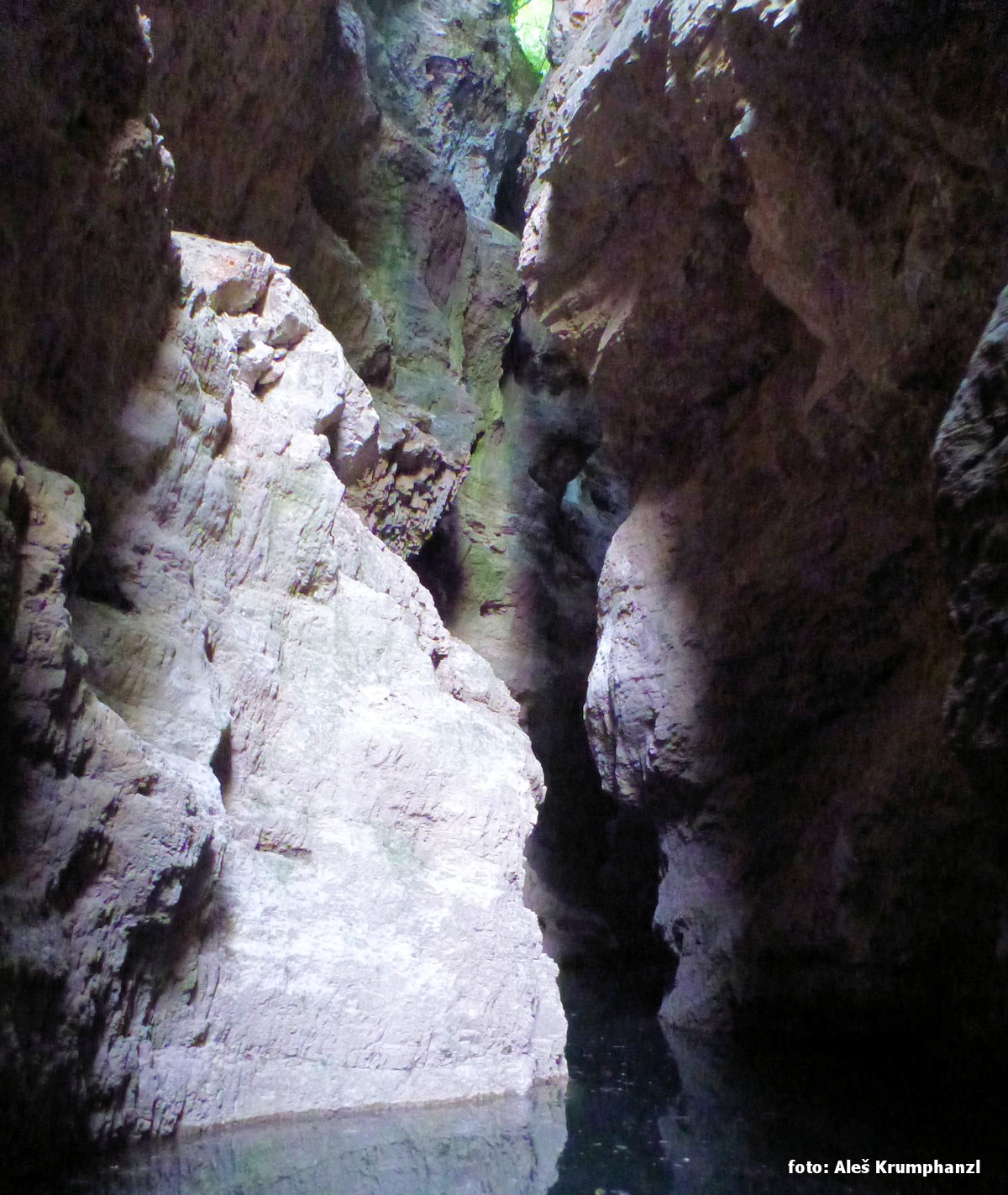 Na konci laguny se opět objevuje průjezd mezi skály a stále se zužuje. Skály jsou ještě vyšší než v první části, světla ubývá, ze stěn kape voda a loď míří kamsi do temného tajemna. Skoro by se hodila čelovka, ale tím bychom se ochudili o zážitek. Ke konci druhé části se začíná objevovat nepatrný protiproud, a pak už vplouváme do otevřeného prostoru, kde již není možné pro protiproud a mělkost Novelly pokračovat. Nádhera. Prostě nádhera a to nejlepší je to, že si to můžete, respektive musíte dát ještě jednou zpátky. Tak příjemnou plavbu.