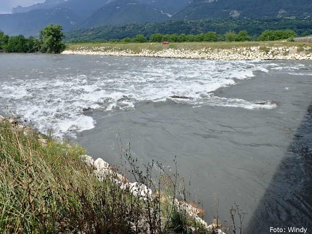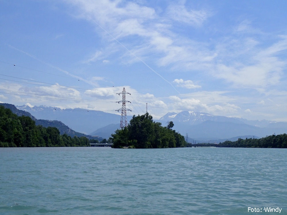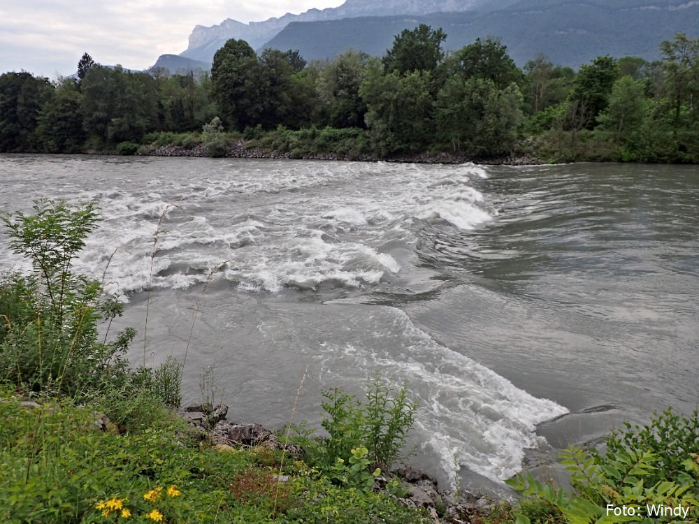 Žádné další záludnosti by nás ale až do Grenoblu čekat neměly. Můžeme se tedy o to více kochat nádherným okolím řeky, ostatně krajina okolo je to, co je na tomto úseku řeky atraktivní. Na levém břehu kopce Chaîne de Belledonne se zasněženými vrcholky, na pravém Massif de la Charteuse. Orientačními body na řece jsou nám mosty. Od druhého přenášení po sedmi a půl km most u Tencinu, po dalších šesti a půl km most v Brignoud.