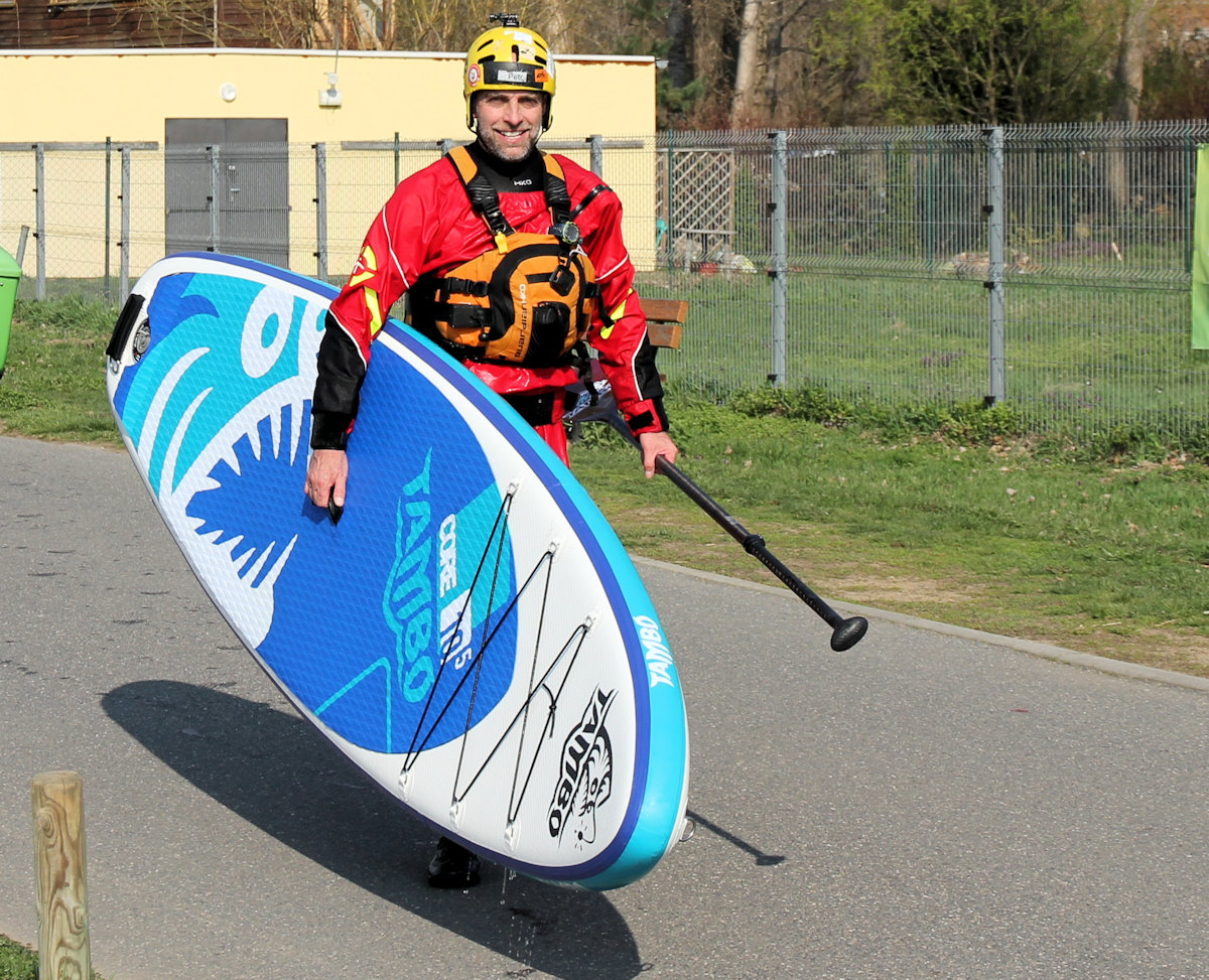 Když jsem v zimě navštívil jeden vodácký obchod a uvidět tam nafouklý paddleboard, říkal jsem si, že je na čase vyzkoušet i tento druh „vodácké lodě“. Zatím jsem s ní přišel do kontaktu jen v rámci videí z vodáckých akcí, ale jaké to je stát na prkně? Kdo jiný by mě měl zasvětit do tajů jízdy, než hlavní propagátor paddleboardingu u nás Honza Rott.