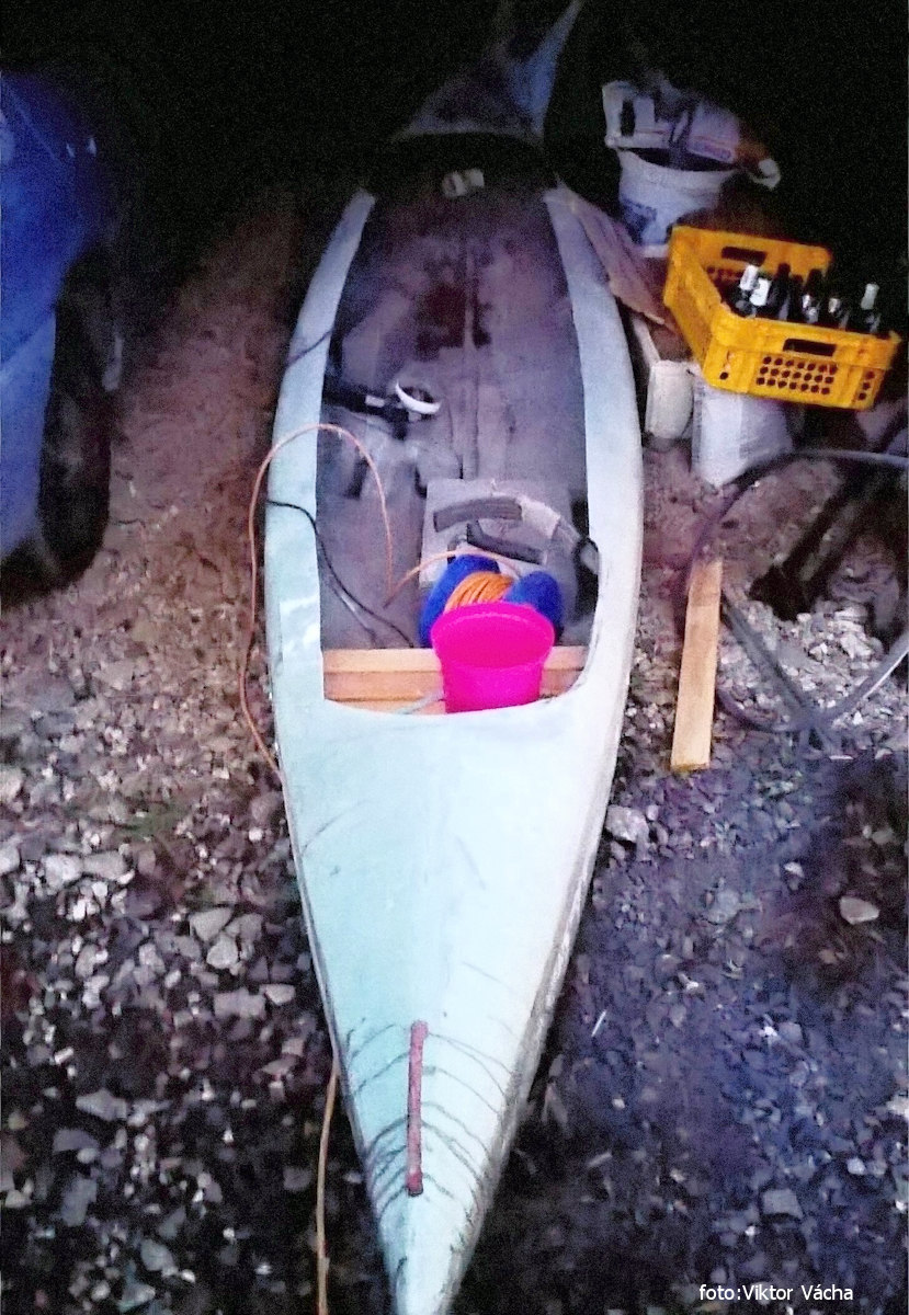 Je tomu cca rok, co jsem brouzdal na různých stránkách a bloumal, co kde mají s vodáckou tématikou. Hledal jsem hlavně inzeráty na prodej zbytků tkanin a střiží na opravu lodí. V tom mé opravářské srdíčko zaplesalo. Inzerát jak rozený pro mě, spoustu zbytků a za pár korun. A k tomu malý bonus – starou loď. Tak fajn, vezmu si ji taky a opravím ji pro kamaráda, který loď shání. Nechtěl jsem za to vše dát více jak 2tis, což jsem s rezervou splnil.