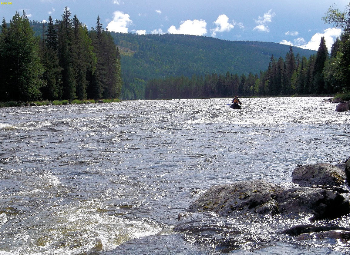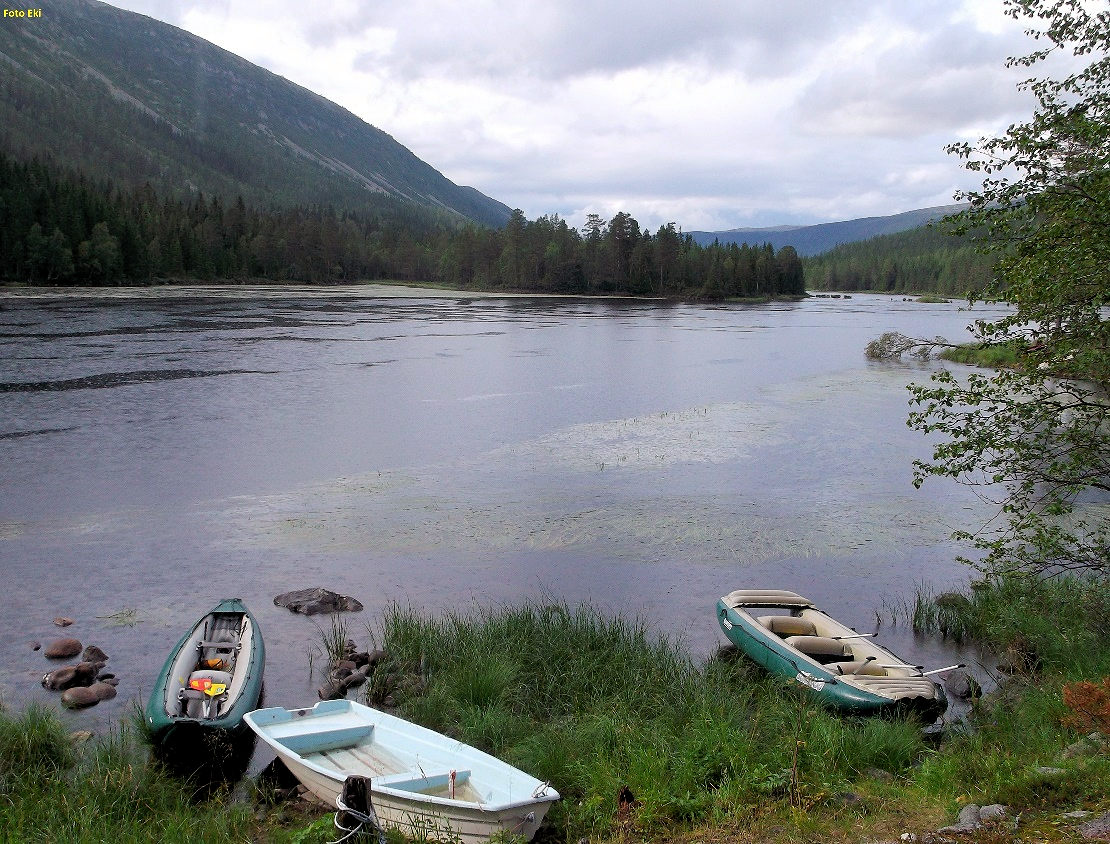 Byla nám doporučena Trysilelva – širší tekoucí řeka s čistou vodou, po které se až do roku 1991 plavilo dříví. Začínáme u jezera Sensjøen u nějaké opuštěné chajdy.