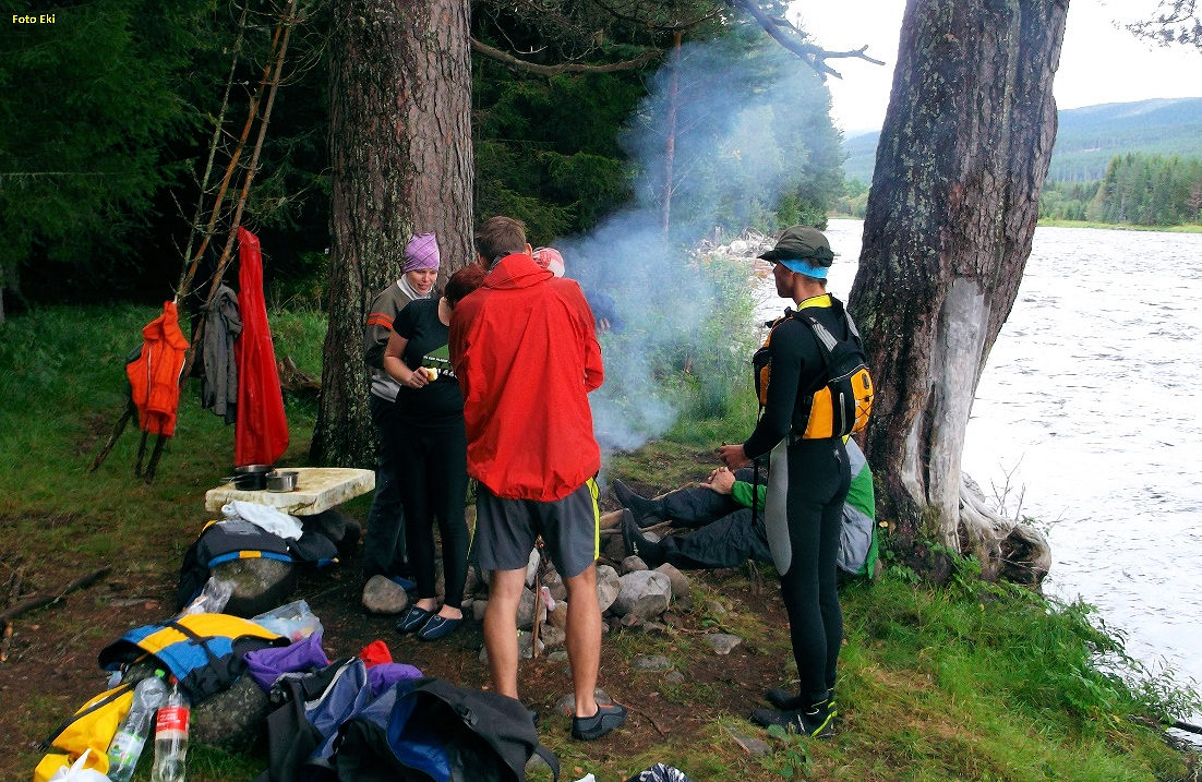 Po pár hodinách plavby už jsme dost prokřehlí, a tak přistáváme a sušíme se u ohně na břehu.