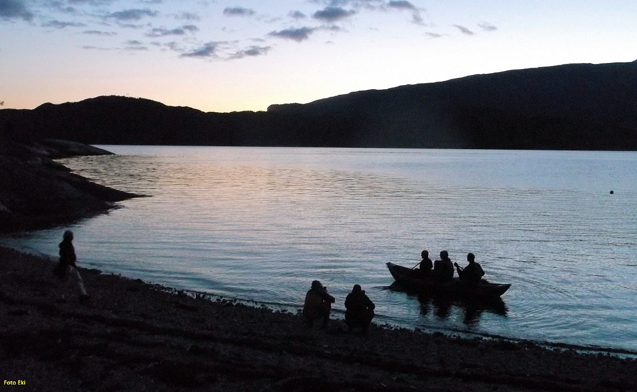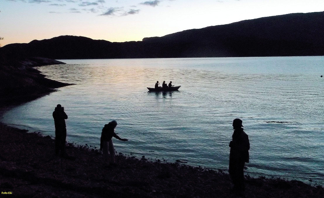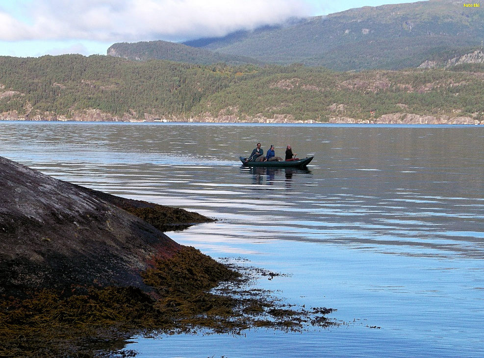 Slunce svítilo do příjemného dne. Odpočívali jsme, chytali mořské ryby, sbírali a v ešusu vařili slávky (černé škeble). A pak taky nafoukli Baraku a propluli se po fjordu. Byl to zvláštní pocit v tichu po klidné hladině mezi skalami, kde kdysi pomalu tekl ledovec.