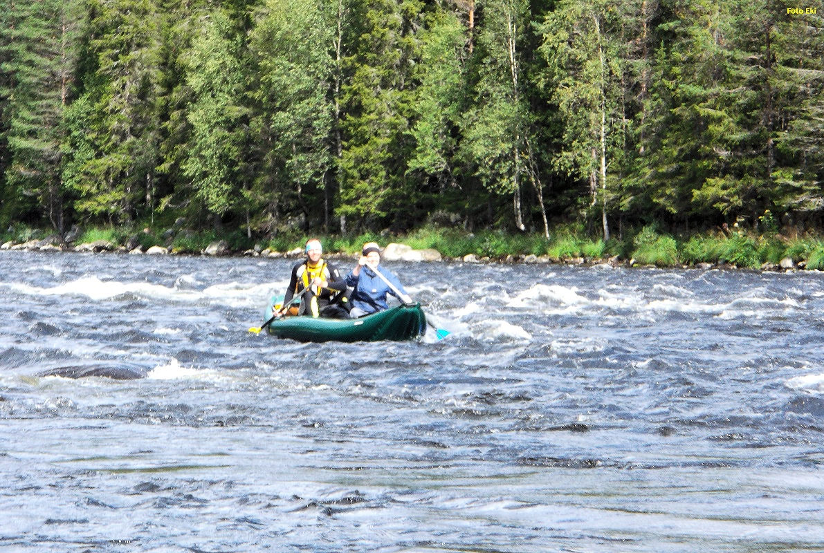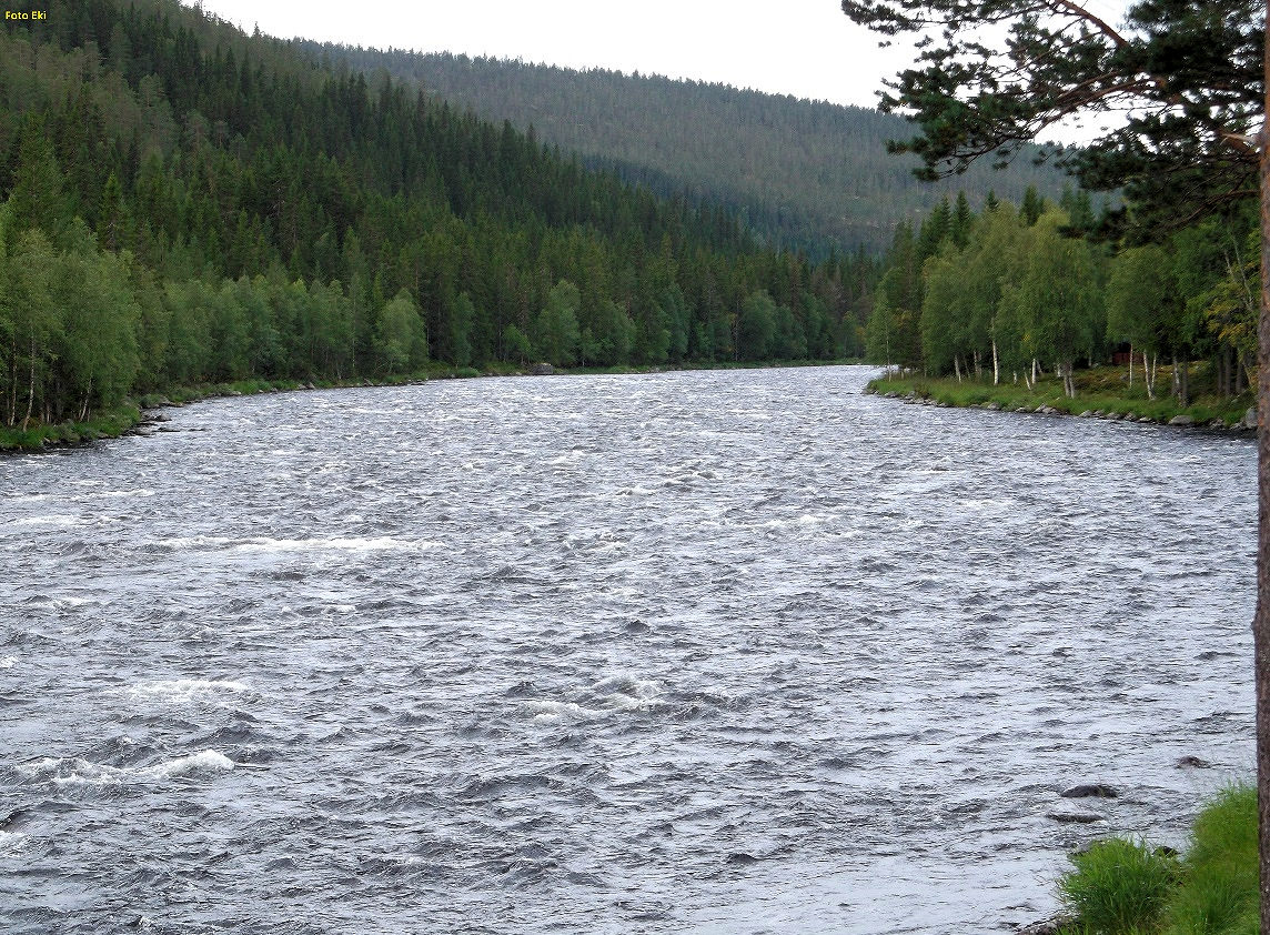 Ráno jsme se svezli o pár kiláčků výš někam pod vesnici Ljørdalen. Na nástupním místě jsme našli na trávníku čerstvou štiku, asi vypadla místním rybářům. Říčka byla krásná, opuštěná a přírodní s obtížností ZW až WW I. V blízkosti tábořiště, kam jsme se vraceli, byly v korytě i volejnaté hlubší tůně. Alespoň se bylo kde vykoupat.