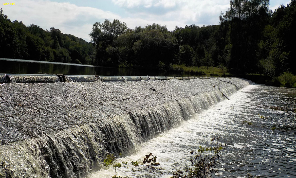 Na první jez narážím po pár stech metrech voleje na 134 km „U papírny“, přenášení je možné po obou březích, vlevo asi jistěji, pod jezem bývá i krátká peřejka.