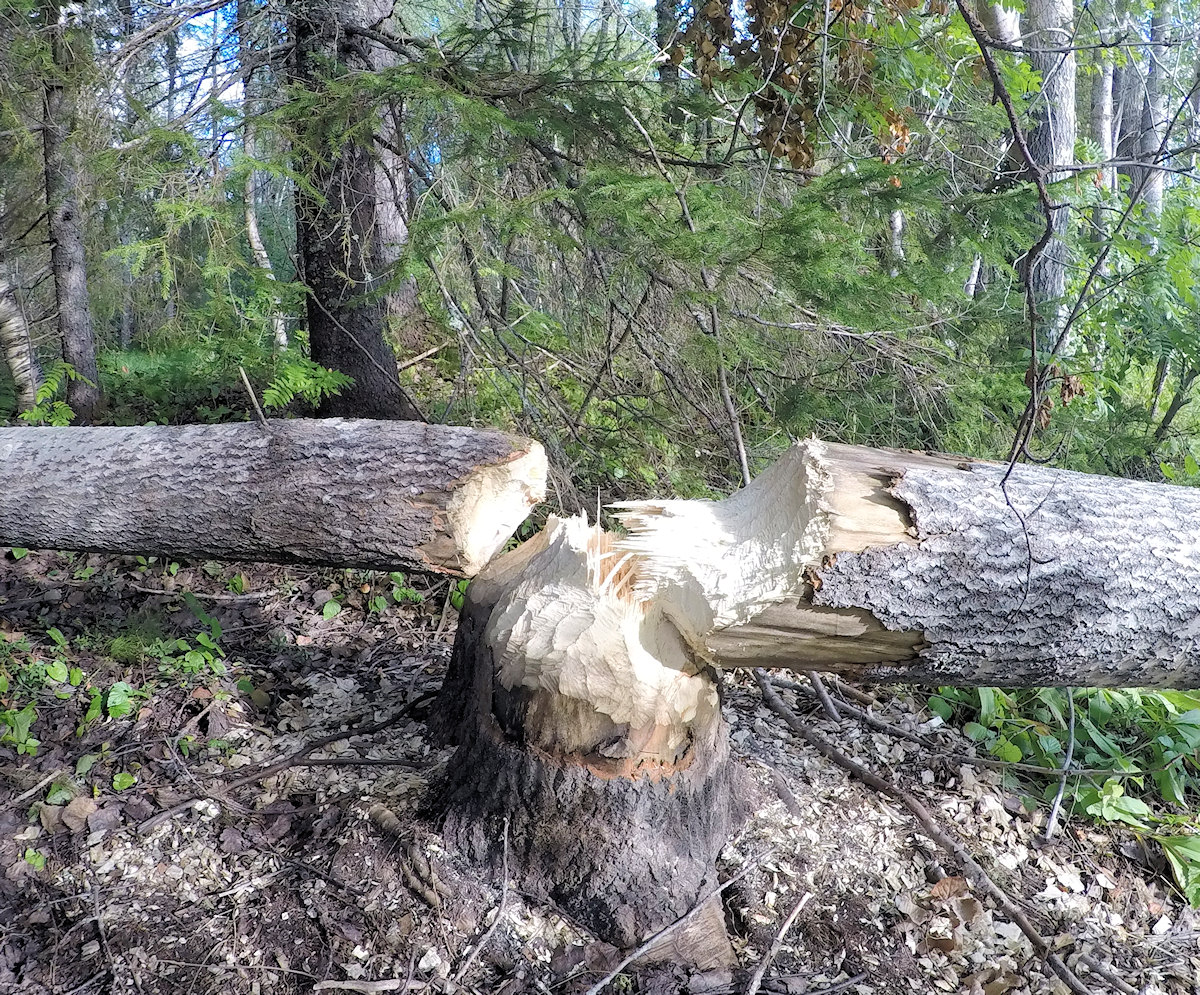 Stan jsme prakticky nepotřebovali, zastavovali jsme u chat nebo přístřešků, kterých je v místě docela dost a denní trasa se dá k nim naplánovat. Voda byla čistá, ale temná, takže nebylo vůbec vidět na dno. Připomínala mi horní Jizeru, která pramenní v rašeliništích, což byl asi podobný případ. Vodního ptactva zde bylo pomálu, ale stopy po bobrech byly skoro všude. Až jsem byl překvapený, jaký strom dokáží překousat.