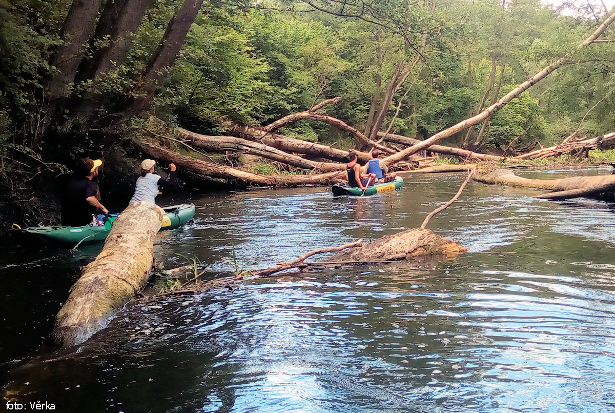 První den jsme vyrazili z nástupního místa situovaného v prostém tábořišti u městečka Sw. Wojciech. Čekal nás 18 km dlouhý úsek (podle místní polské kilometráže měří dokonce 20 km). Oblast je vyhlášená padlými kmeny, které se po chvíli v Obře začaly jen hemžit. Některé šlo podeplout či přetáhnout a dost toho bylo s citem prořezáno. Tedy tak, aby to kajakář či kanoista neměl úplně zadarmo a přitom mohl vždy někudy proplout. Menší část překážek jsme překonali přetažením Pálav po břehu.
