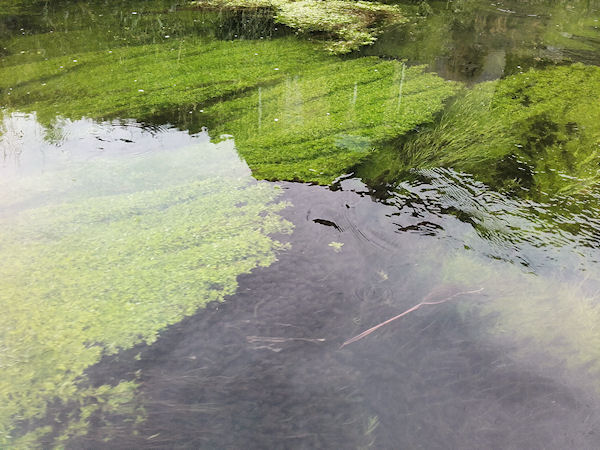 Řeka je zarostlá vodními rostlinami i do hloubky