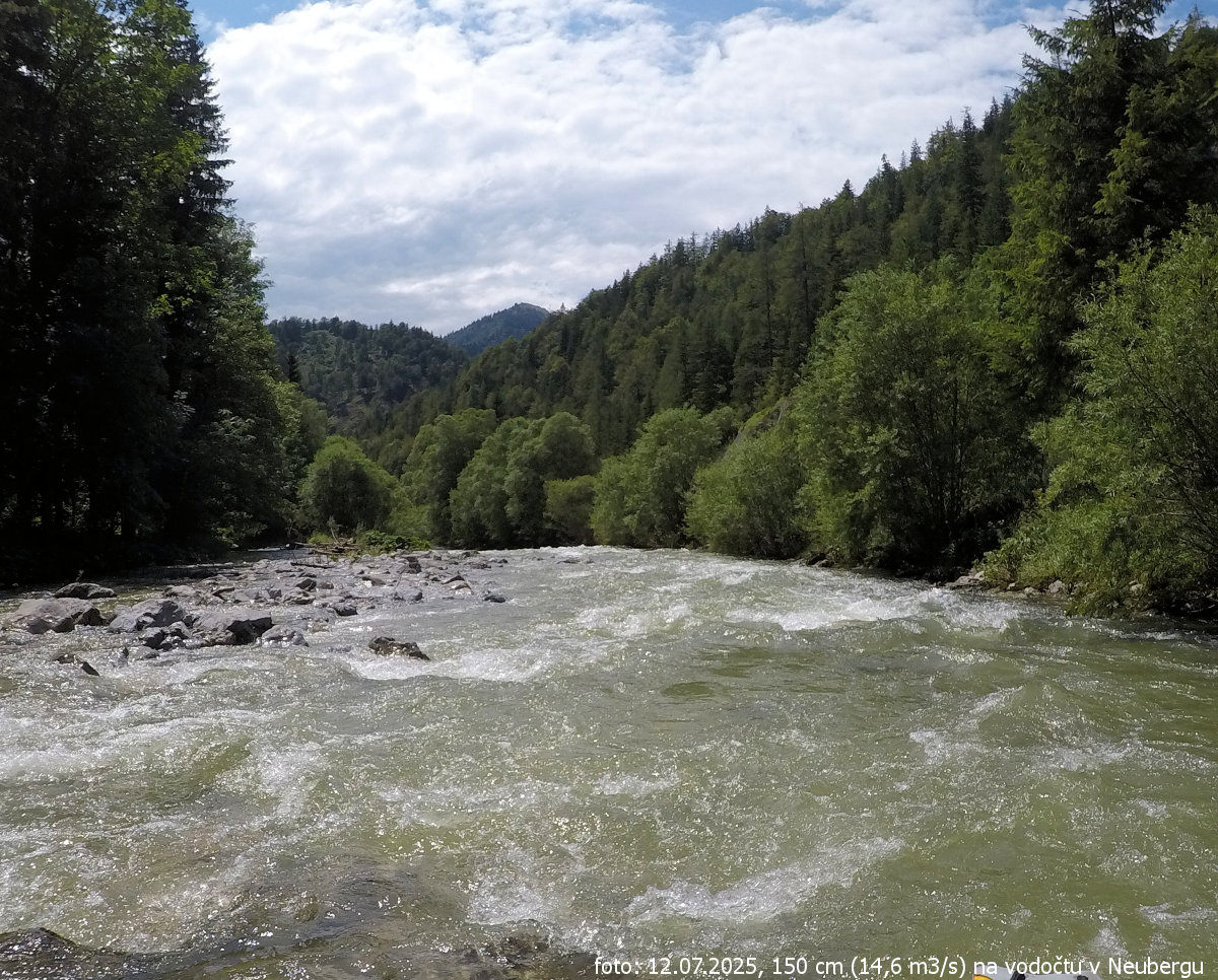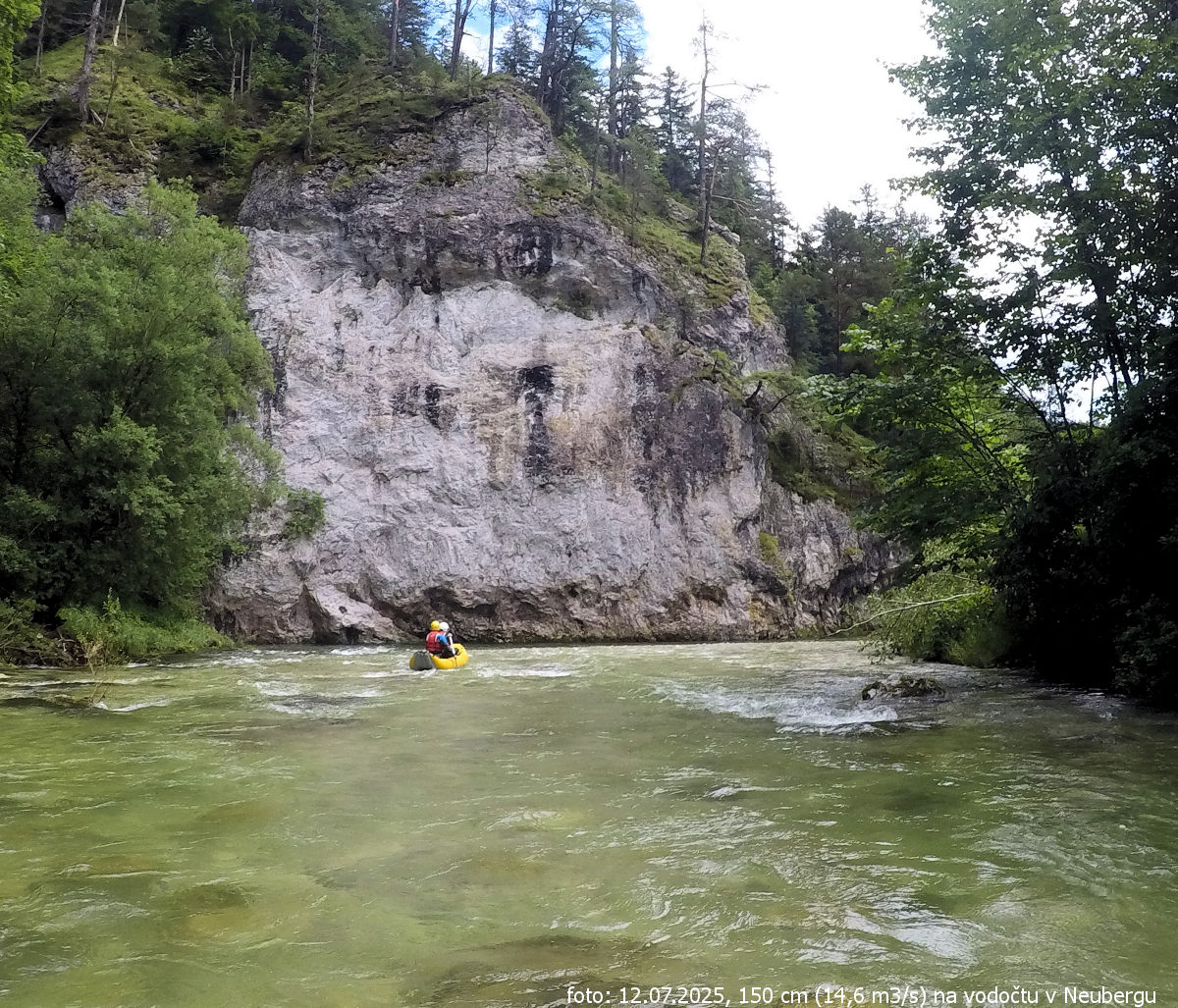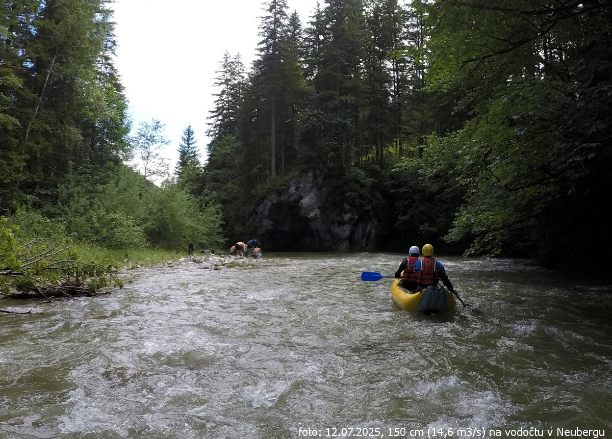 Ujeli jsem cca 11 km za 1,5h. Stav jsme měli 150 cm (14,6 m3/s) na vodočtu v Neubergu, což ale kubíkově rozhodně neodpovídalo našemu úseku. Voda byla na limitu, nikde nebylo nutné vystupovat a přetahovat, natož nějaký jez. Na rozpádlování před Salzou se Mürz rozhodně hodí, jen je nutné zde chytit vodu.