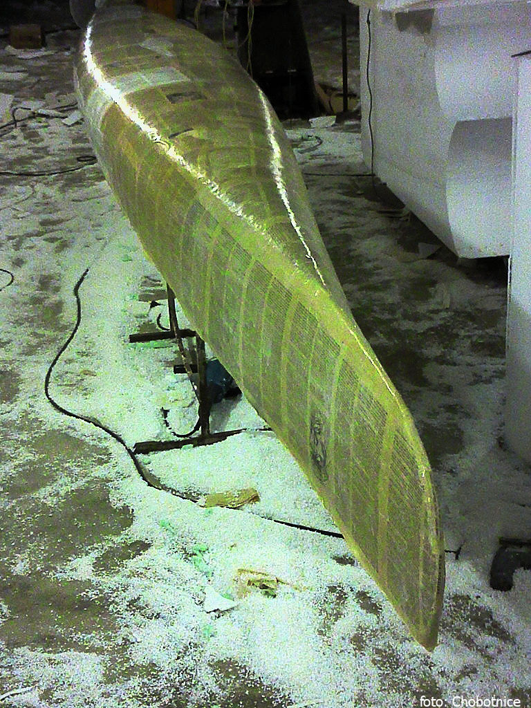 Když nastala konečně vhodná konstelace, zlehka jsem trup obrousil, očistil a přelaminoval stejně jako Cedrofku tenkou vrstvou epoxidového laminátu. Původně jsem si říkal, že by to mohl vydržet papír samotný, leč nakonec jsem mu takovou důvěru na našich řekách nedal. Možná kdyby se plulo opravdu jen po přehradě bez kontaktu se dnem.