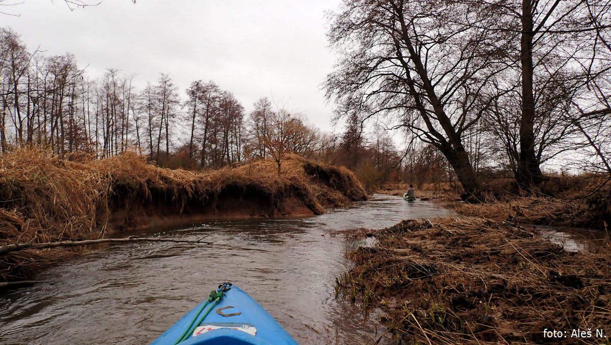 Těchto dvou potoků si člověk snadno všimne při plavbě po horní Ohři, protože do ní ústí oba zleva, kousek od sebe, cca 600 m před mostem v Nebanicích. Obvykle jimi teče jen trochu vody na dně. Letos, při plavbě po Ohři první únorovou sobotu, tomu ale bylo jinak. Oba toky jsme od soutoku prozkoumali plavbou pár desítek metrů proti proudu. Usoudili jsme, že to půjde.