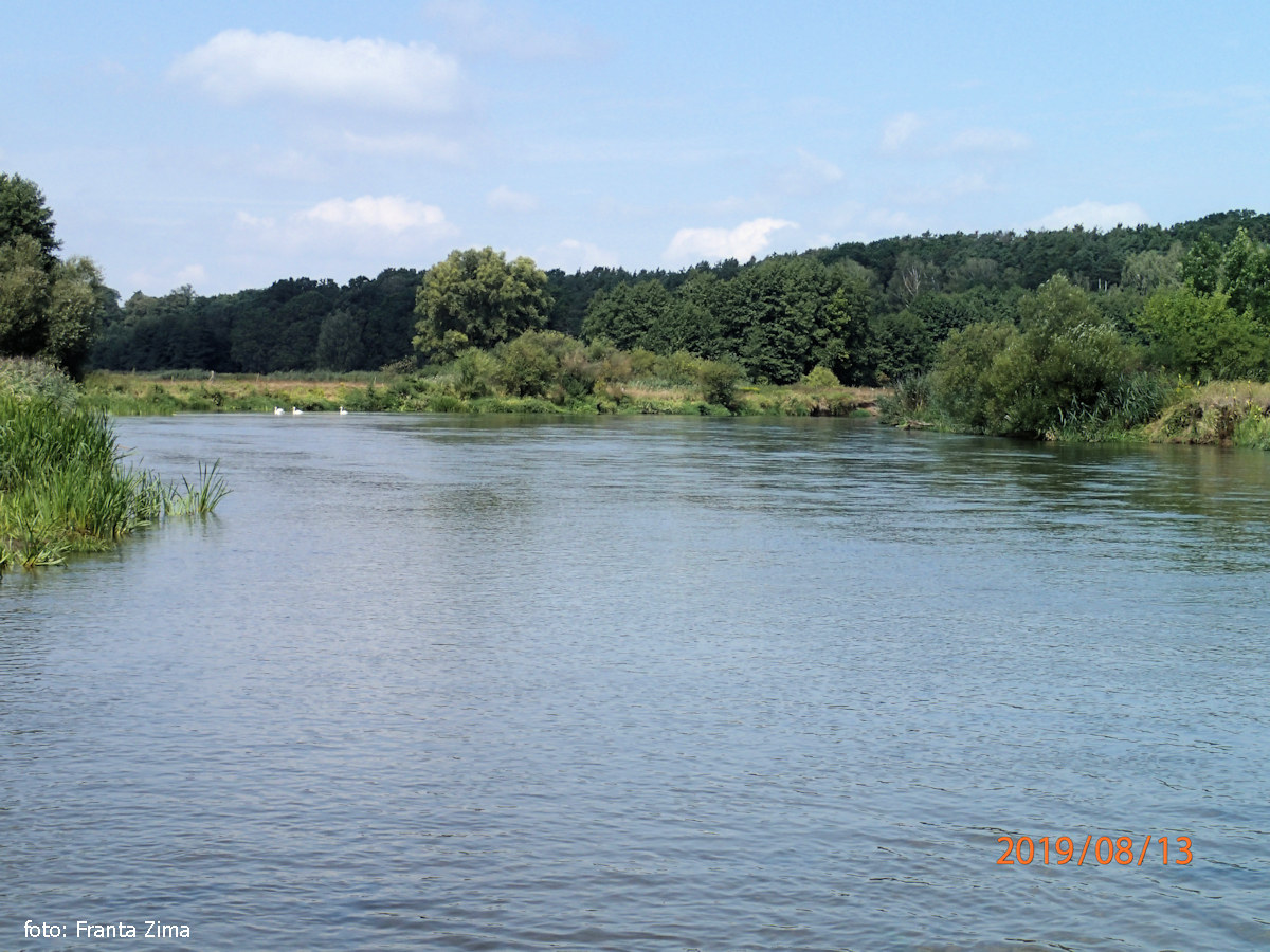 Hned jsme vpluli mezi lesy. Na řece bylo i celkem dost místních vodáků na v Polsku oblíbených dvoukajacích. Asi po 7 km jsme dopluli k občerstvovně v Teofilowě na levém břehu. Bylo zde mnoho jak vodáků, tak i cyklo a mototuristů. Taktéž jsme se tu zdrželi na jídlo a pivko. Bohužel většina stánků a bufetů níže bylo zavřených. Snad proto, že tady prakticky všichni polští vodáci skončili a dál jsme byli na řece sami. Nevím, snad jezdí jen na víkendy.