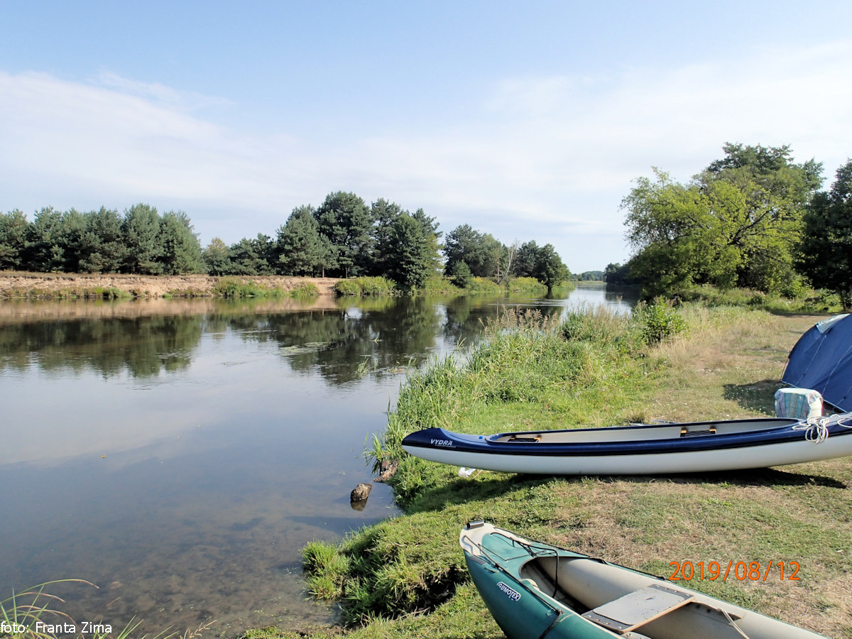 Řeka dál pěkně proudí, protože tu není ani jeden jez. Občas se jen tvoří písečné prahy, kde lodě drhnou o dno, ale vystupovat jsme museli minimálně. Na nákup jsme zastavili v obchodě v Tomczycích na levém břehu. Je zde u mostu na pravém břehu kemp, ale zavřený. Cestou jsme šli také prozkoumat kemp u Bialobrzegu, ale i ten byl mimo provoz. Utábořili jsme se tedy o několik km dál za Bielkowem na levém břehu. Táboření docela pěkné, jen se tu špatně vystupovalo.