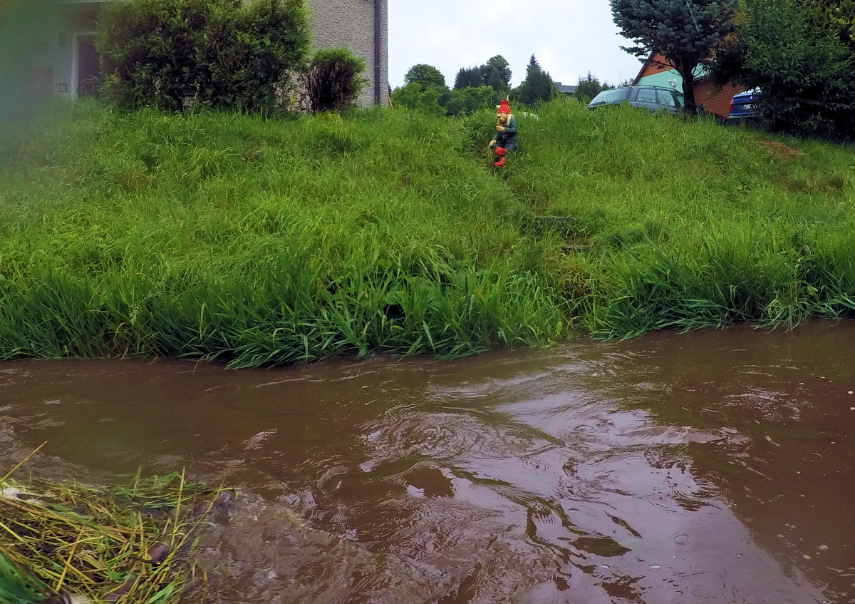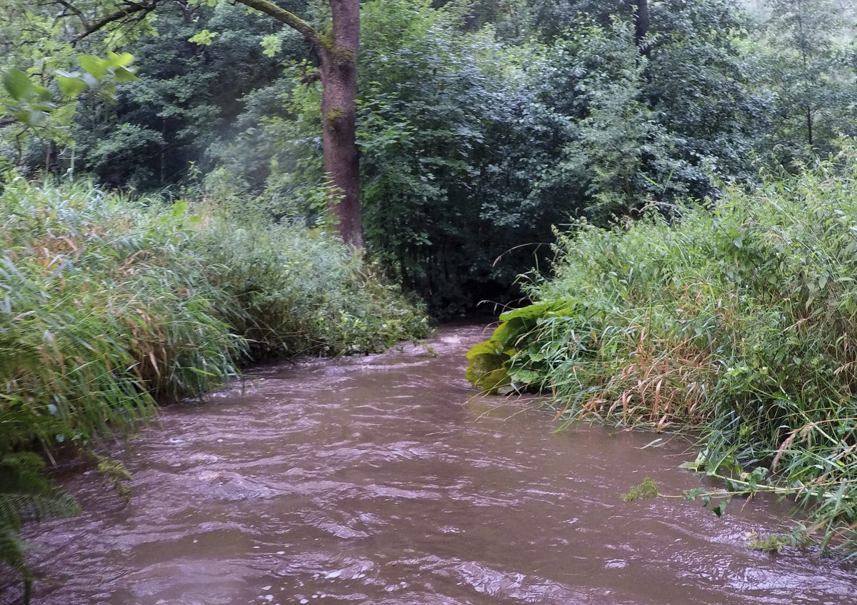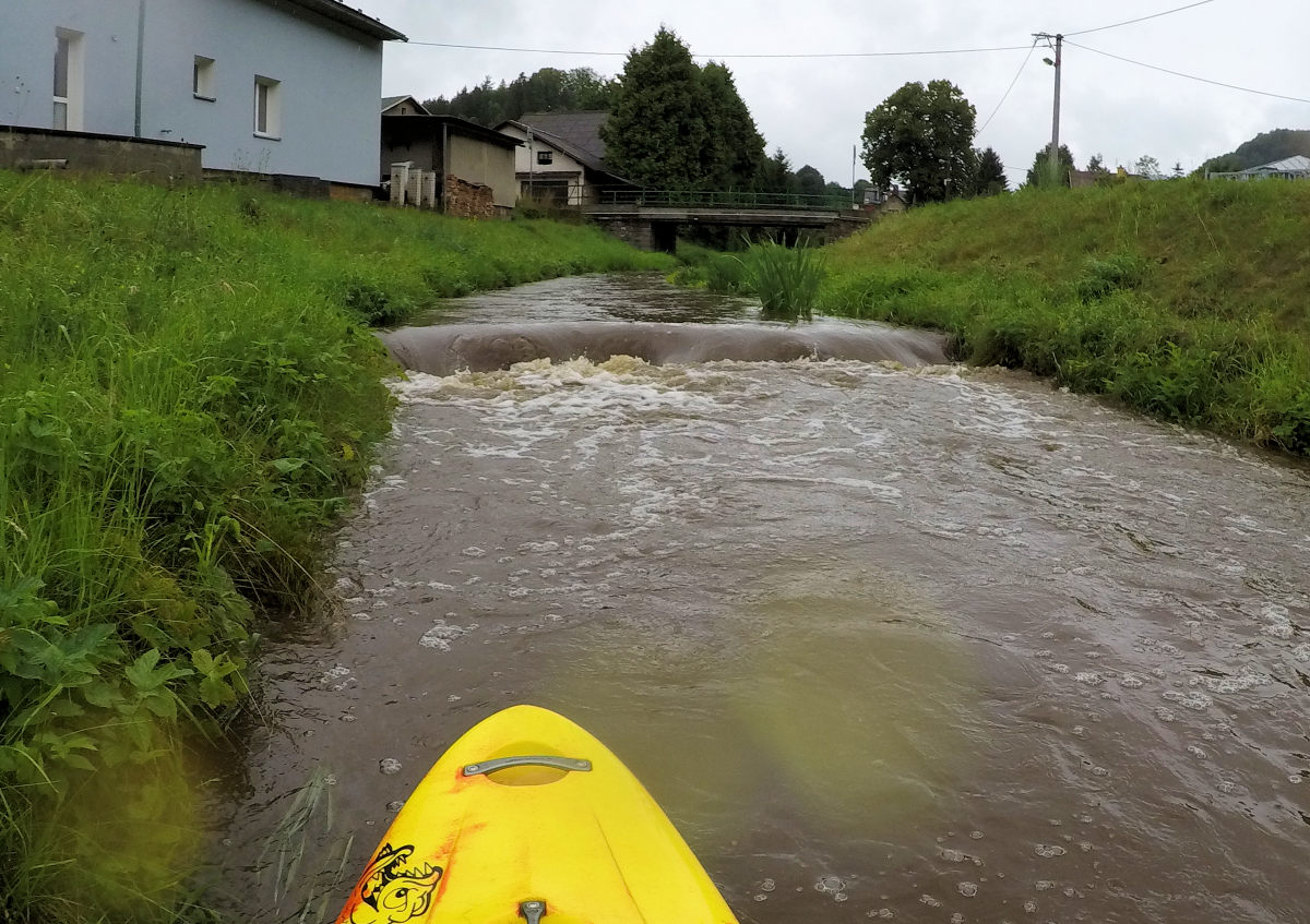 Začátek srpna je deštivý, všude to teče. Sice jsem si dal závazek, že v létě nebudu žádné úzké potoky splouvat, protože se obvykle jedná o splachovadlo, kde nejsou skoro žádné vracáky a pokud jsou, tak se do nich nedá dostat, jelikož jsou zarostlé. U Dřevíče dělám výjimku, jelikož to není žádná divočárna. Musím jednat rychle, voda začíná kulminovat a bude rychle padat dolů.