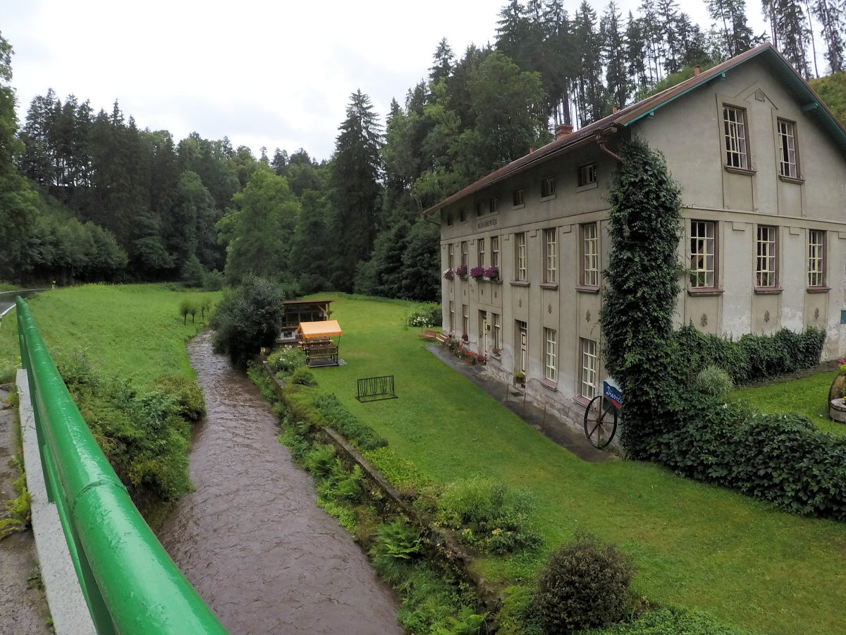 Parkuji u mlýnu Dřevíček a na malém prostoru se zde přetlačuji s dalšími auty, jejichž osazenstvo si šlo prohlédnout unikátní vodní mlýn s technologií z roku 1941. Nemám zajištěn transport, ale to se vyřeší později. Není čas, voda padá a na potoce je to znát. Proto nejedu ani výše, dá se ale splouvat už ze Stárkova.