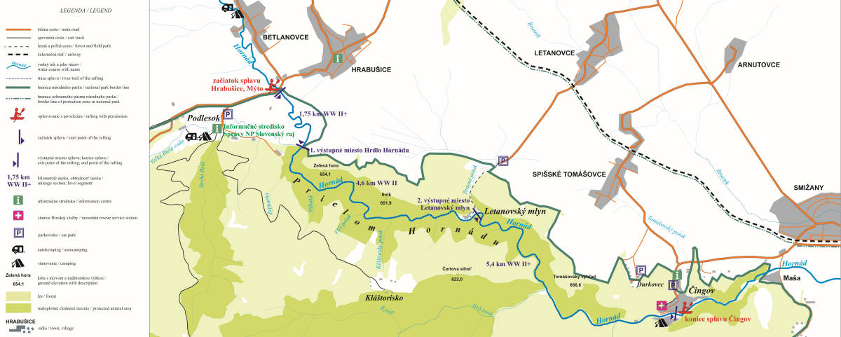 Počas plavby územím Národného parku je zakázané vystupovať na brehy na iných ako oficiálnych výstupných miestach ( Hrdlo Hornádu, Letanovský Mlyn, Čingov) . Nástupné miesto je nad mostom v Hrabušickom Mýte, výstupné miesto na pravom brehu rieky pri chate Ihla v Čingove.