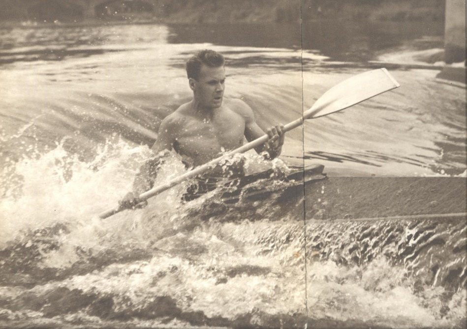 Ikonická fotografie dívky, skládající kajak (L. Sitenský: NA ŘEKU…! 1957)