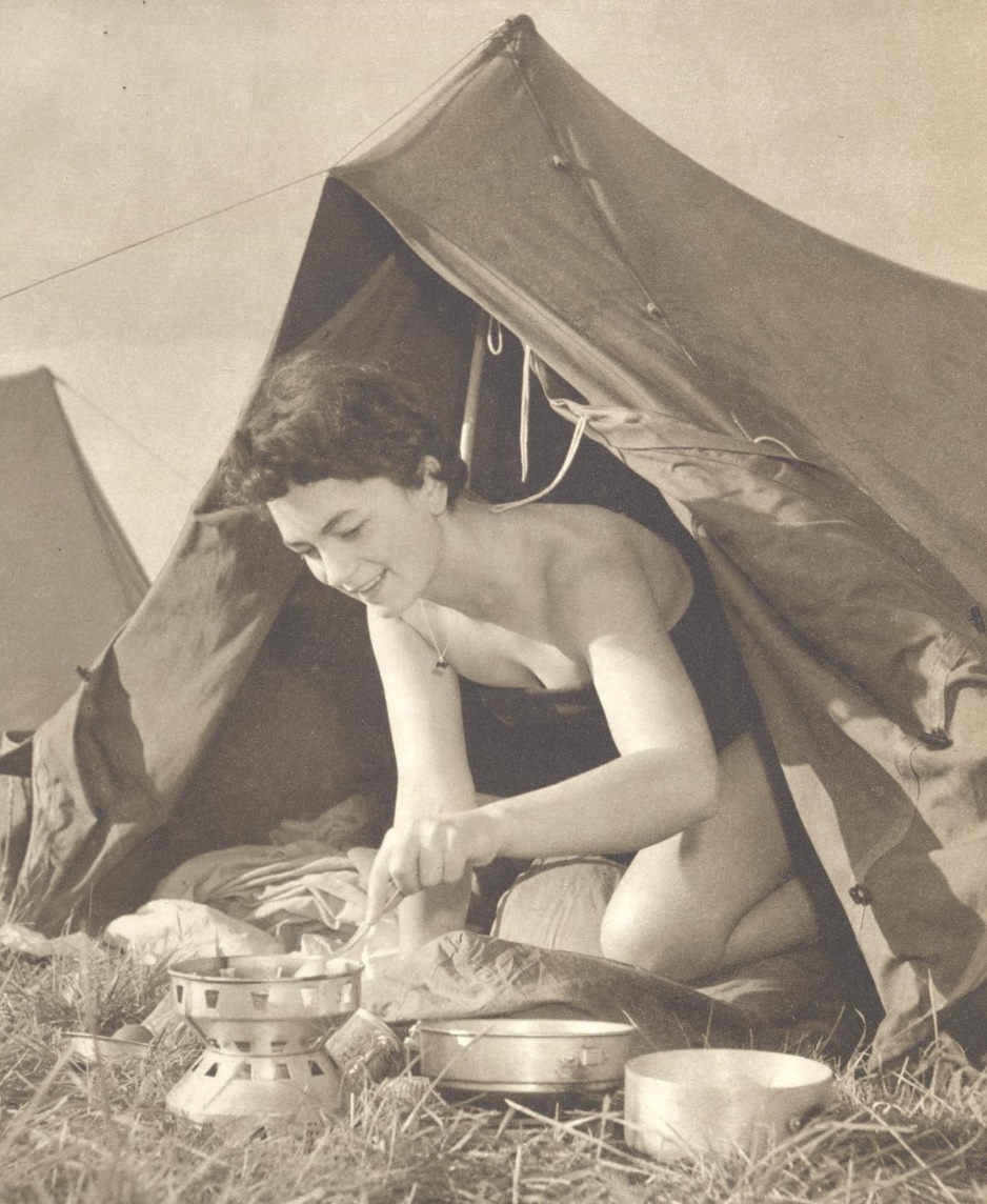 Příprava vodácké snídaně (L. Sitenský: NA ŘEKU…! 1957)