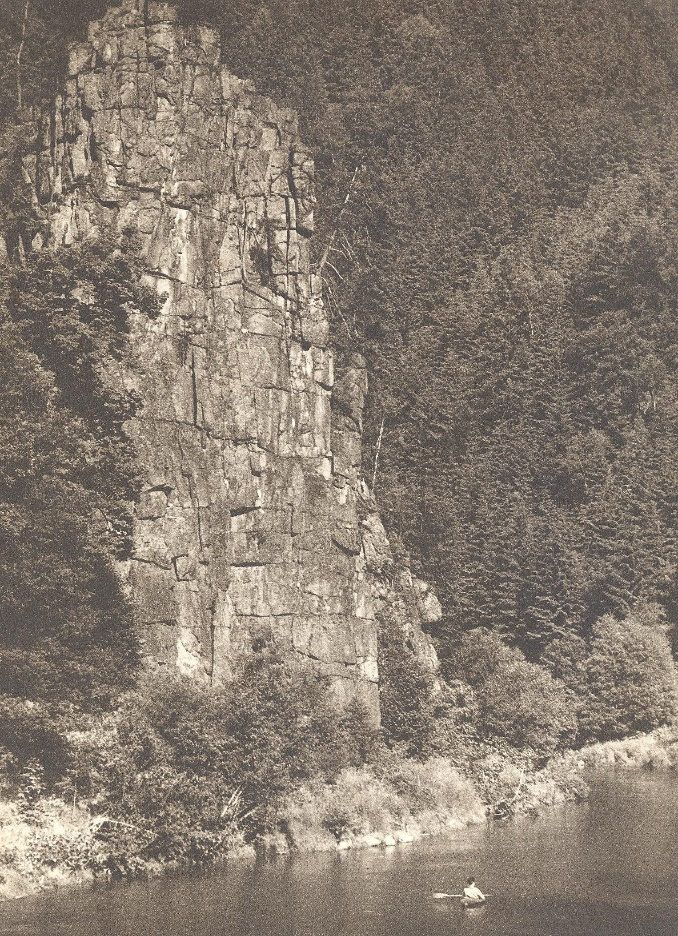Vodák pod Svatošskými skalami na Ohři (L. Sitenský: NA ŘEKU…! 1957)