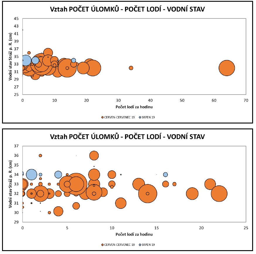 Ze studie vyplývá, že největší nápor lodí byl během posledního víkendu v červnu a na svátky v červenci 2019, kdy projelo řekou až 119 lodí, někdy napočítali i 64 lodí za hodinu. V ostatních dnech a víkendech pak vše kleslo na 1 – 30 lodí denně.