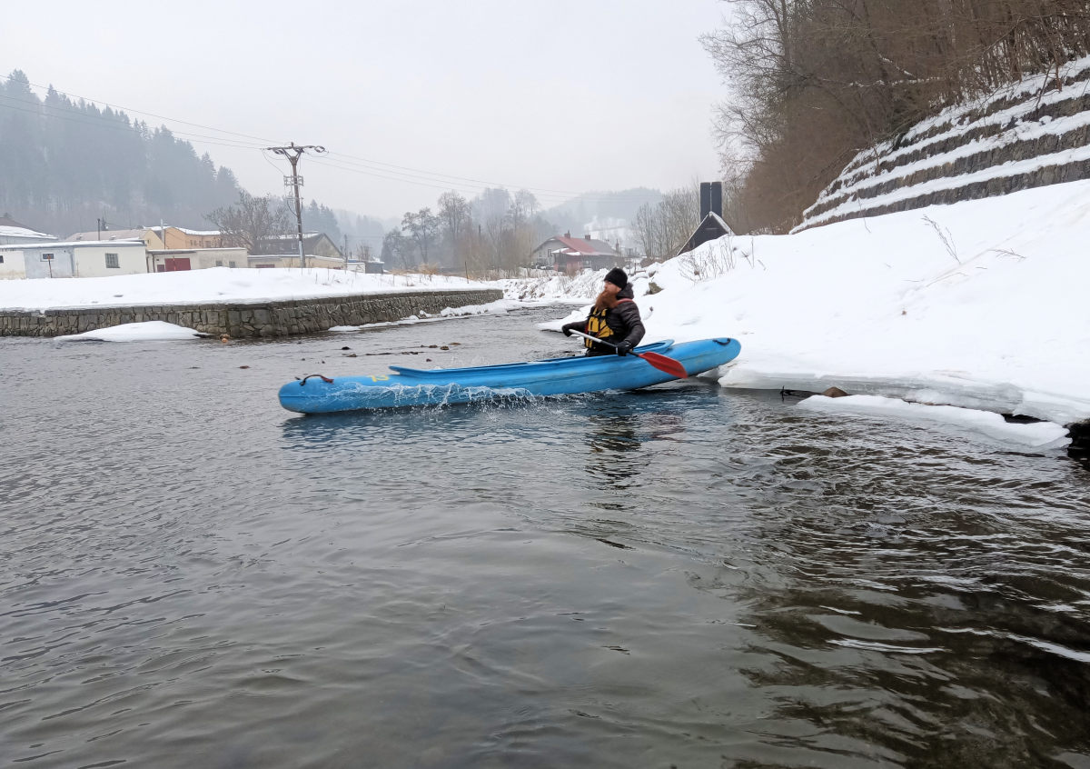 V plánu je splutí řeky Moravy z Hanušovic do Bohdíkova. Mám trochu obavu, jak to bude se zamrzlou řekou, aby se vůbec mohlo dát plynule jet. Ledové kry, zamrzlé vracáky a časté zužování řeky narůstajícími ledy od břehu do úzkého proudu uprostřed řeky, který se nakonec ztratí kdesi pod ledem, už mám taky za sebou. Ne vždy to bylo veselé a bezpečné. Jízda v zimě prostě má svá specifika.