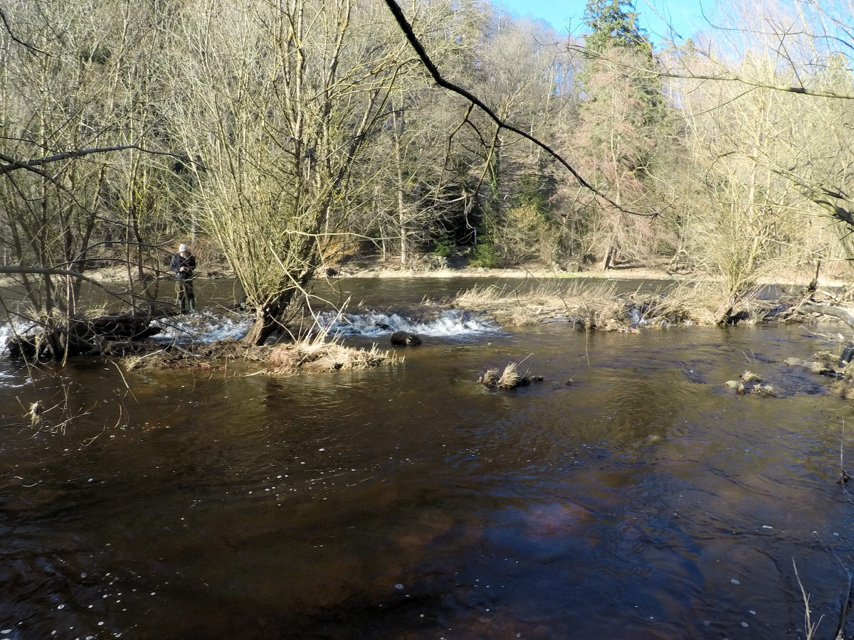Pokud by se oddělení toku od pravého ramene nerealizovalo, docházelo by k nekontrolovatelnému přelivu většiny vody přes již značně porušené zbytky zdí. Ty jsou navíc poměrně nízké, za našeho průtoku 27 m3/s v Březí byly výrazně přetékány, natož při vzedmuté hladině díky klapce. Jez tak bude realizován klapkou na levém břehu, ale bude dále pokračovat rozdělovací zdí uprostřed toku až k pravému břehu cca 200 m nad klapkou, kde bude zavázán do břehu. V zásadě tak bude přehrazen celý tok lomeným „jezem“, v horní části bude ponechán průjezd pro vodáky a pro migraci. Jak se docílí převod většího množství vody do levého ramene, je pro nás záhadou. Tento průtok z hlediska migrace nelze rozdělit a převádět ho na více místech, protože by pak pravé rameno nebylo způsobilé pro migraci. Jak bude zeď realizována, aby při přetékání nedocházelo k narušování jejího upevnění do koryta, je též pro nás otázkou.