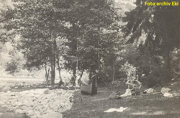Kempování na břehu řeky u šutroviště – červenec 1932