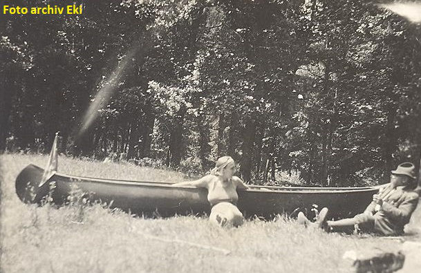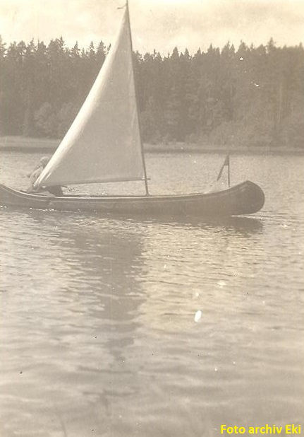 V srpnu 1932 zajeli moji prarodiče na letní odpočinek do jižních Čech, konkrétně k Chlumu u Třeboně. Jak je patrné z fotek, zkoušeli při tom mimo jiné na rybníce plavbu na kánoi s plachtou (kanoesailing) a splouvání okolních toků.