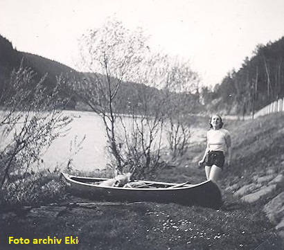 Moje babička na letní vyjížďce kánoí po rybníce Staňkov 1939