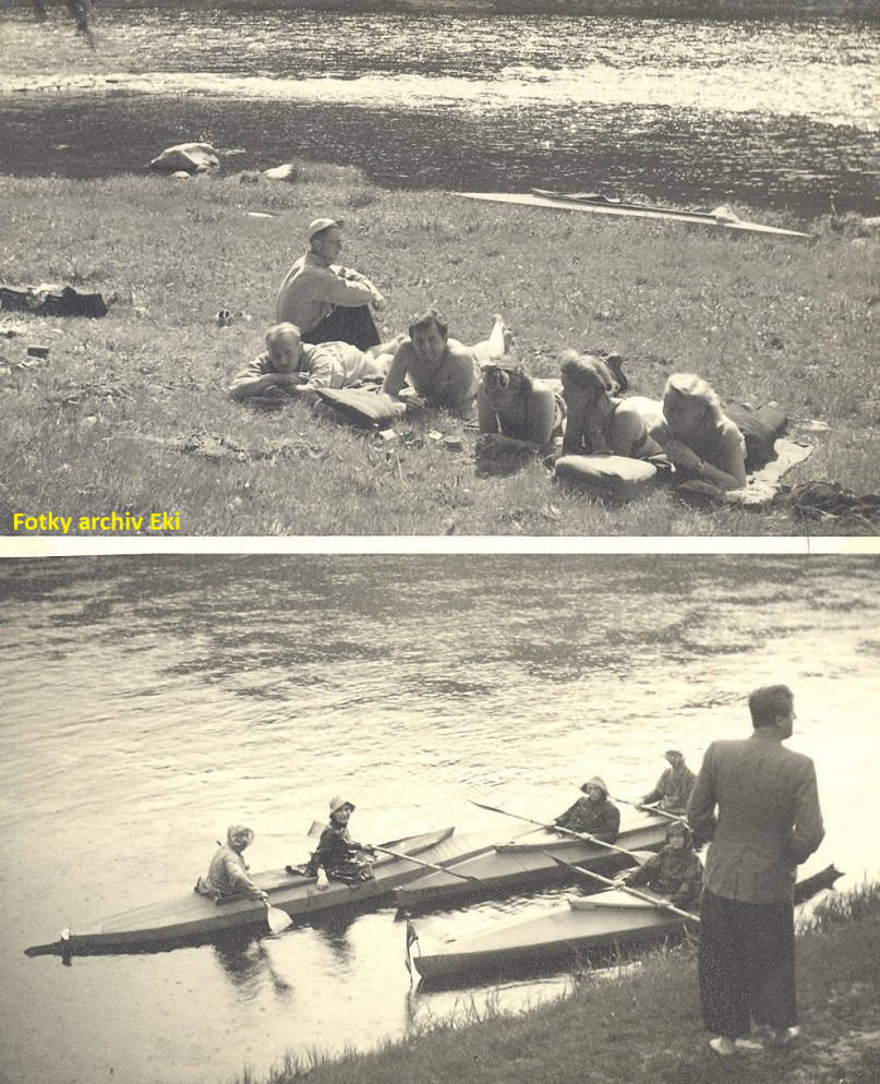 Děda a babička splouvali řeky jak samostatně, tak s partou kamarádů. Následující fotky ilustrují jejich výpravu s partou na střední Vltavu v časném létě 1939. Je vidět, že u členů party převažovalo splouvání na dvojmístných kajacích, které byly většinou levnější, než velké dřevěné kánoe.