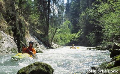 Druhý prodloužený květnový víkend jsme se vydali pojezdit do Rakouska a Německa okolo Kufsteinu. Původní nářezoidní plán jsme z důvodu méně příznivých vodních stavů (někde více, jinde zase méně) a přizpůsobení se všem účastníkům naší malé výpravy poněkud zmírnili, ale i tak si „jezdiči“ přišli na své a hned první den jsme se pěkně vybáli na začátku spodního úseku Brandenberger Ache. Většinou ale byly řeky ve znamení spíše pohodové plavby a kochání se krásami okolní přírody. Bonbónkem druhého dne bylo splutí krátké ale pěkné soutěsky rakouské říčky Weissach. Teče souběžně se silnicí č. 173, na kterou odbočíme z dálnice A 12 (Inntalautobahn) asi 5 km za Kufsteinem na sjezdu č. 6. Pokud jedeme na tyrolské nebo švýcarské řeky, zajížďka asi 15 km se vyplatí.