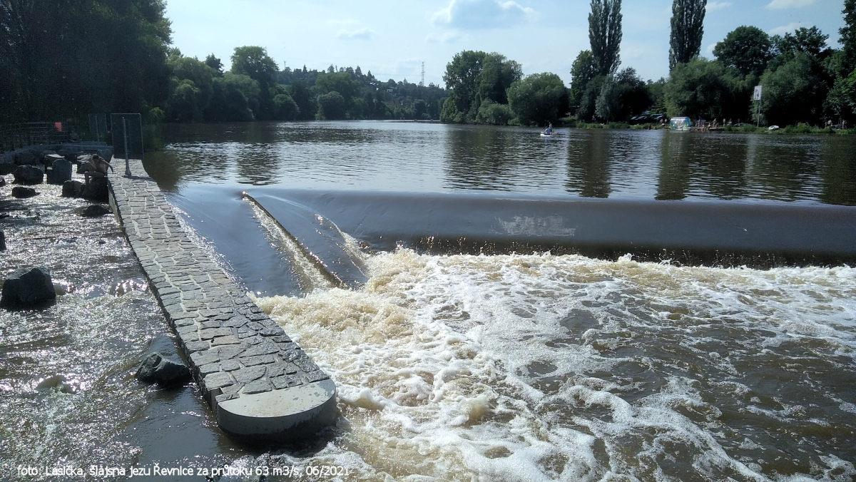 r.km 16,0 rybí přechod, propust jezu Dobřichovice za 50 m3/s