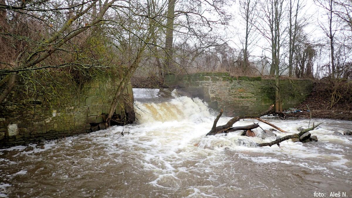 r.km 11,9 Jez u Nehasic 6.3.2022, stav 31cm (0,95m3/s) v Postoloprtech