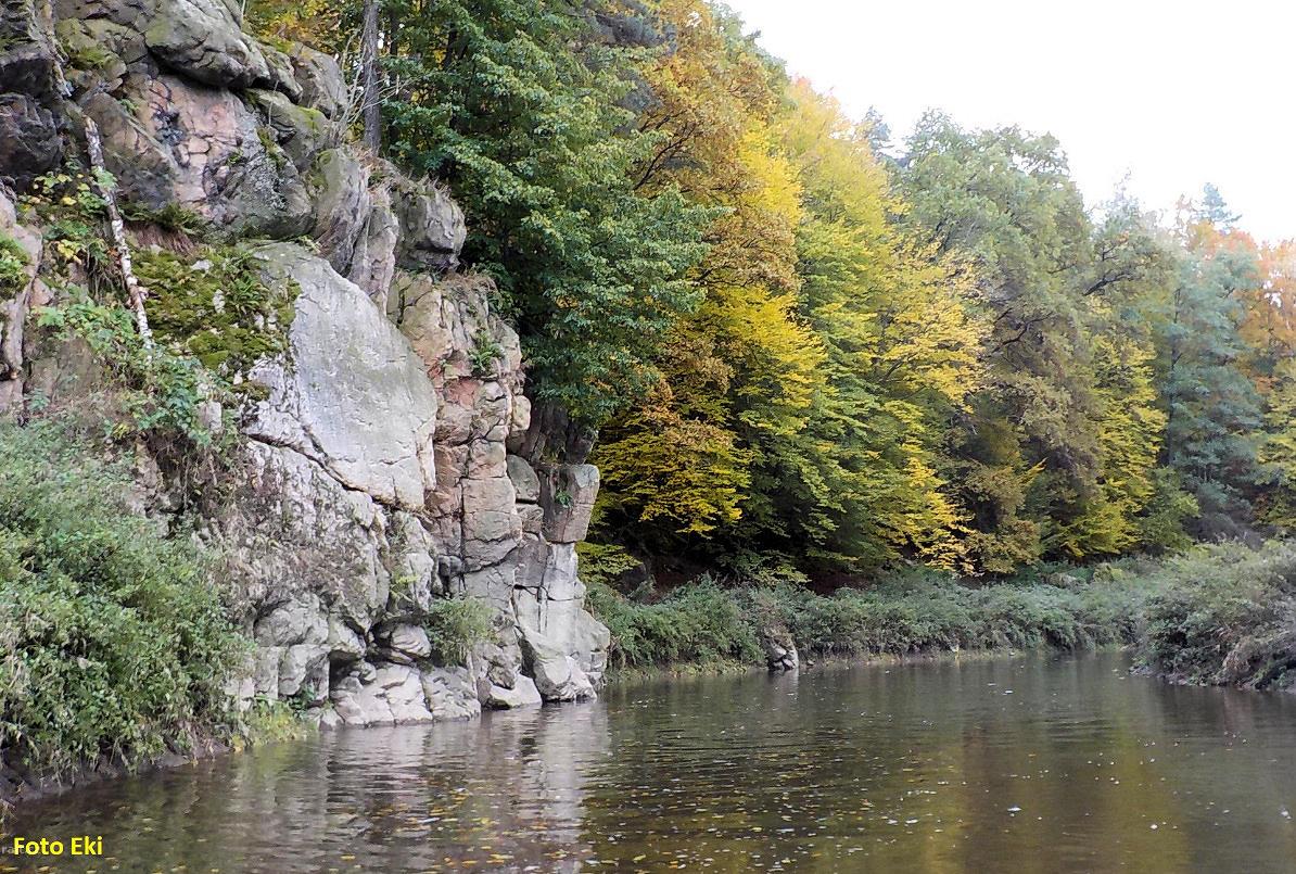 3.10.2010, otevř. debl, z Pařížova do Ronova, stav (žleby): 72 cm. Bezvadná podzimní řeka, krásná bř ...