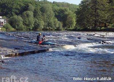 První velká peřej z Riegrovky (vždy prohlednout) s úvodními velkými balvany je zaterasana kládami. ...