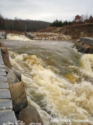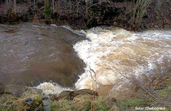 Včera za stavu 90 cm z výtoku ejpovického jezera do Nadryb na Berounce. Přenášeno 5 stromů (některé ...