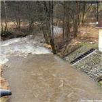 Kosí potok mezi silnicemi dnes 16.3. při 7,5 m3 - několik popadaných stromů - všechny šly přejet, ka ...