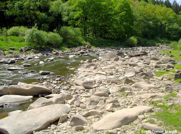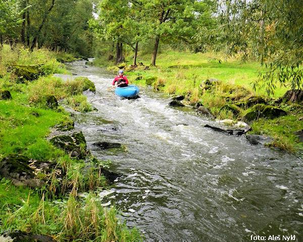 Těsně za km 5 (vlevo velký patník) leží v řece strom (lze ho objet úplně zprava). Druhý strom je o c ...