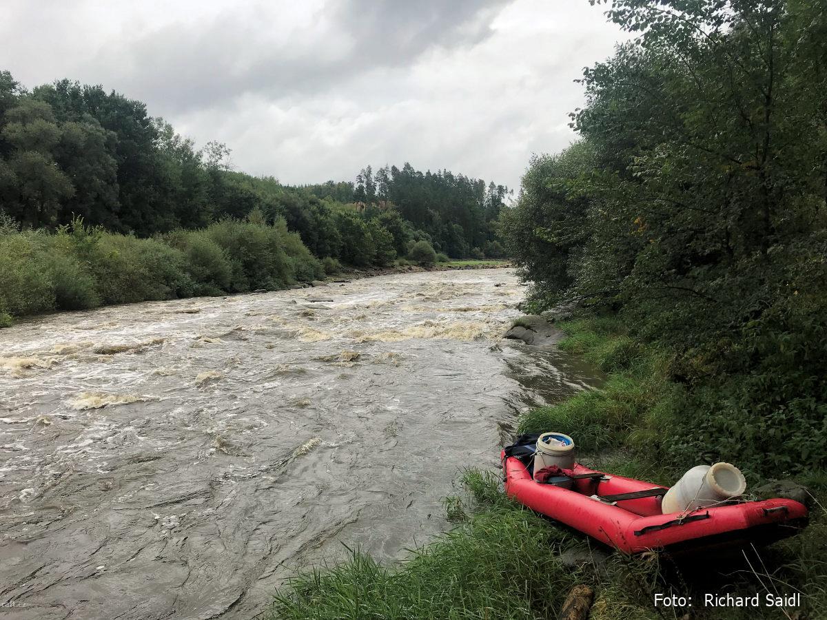 Cca 200 m Pod jezem pod Ostrovcem byl přes řeku drát , špatně viditelný , za stavu 113 cm ve výši pá ...