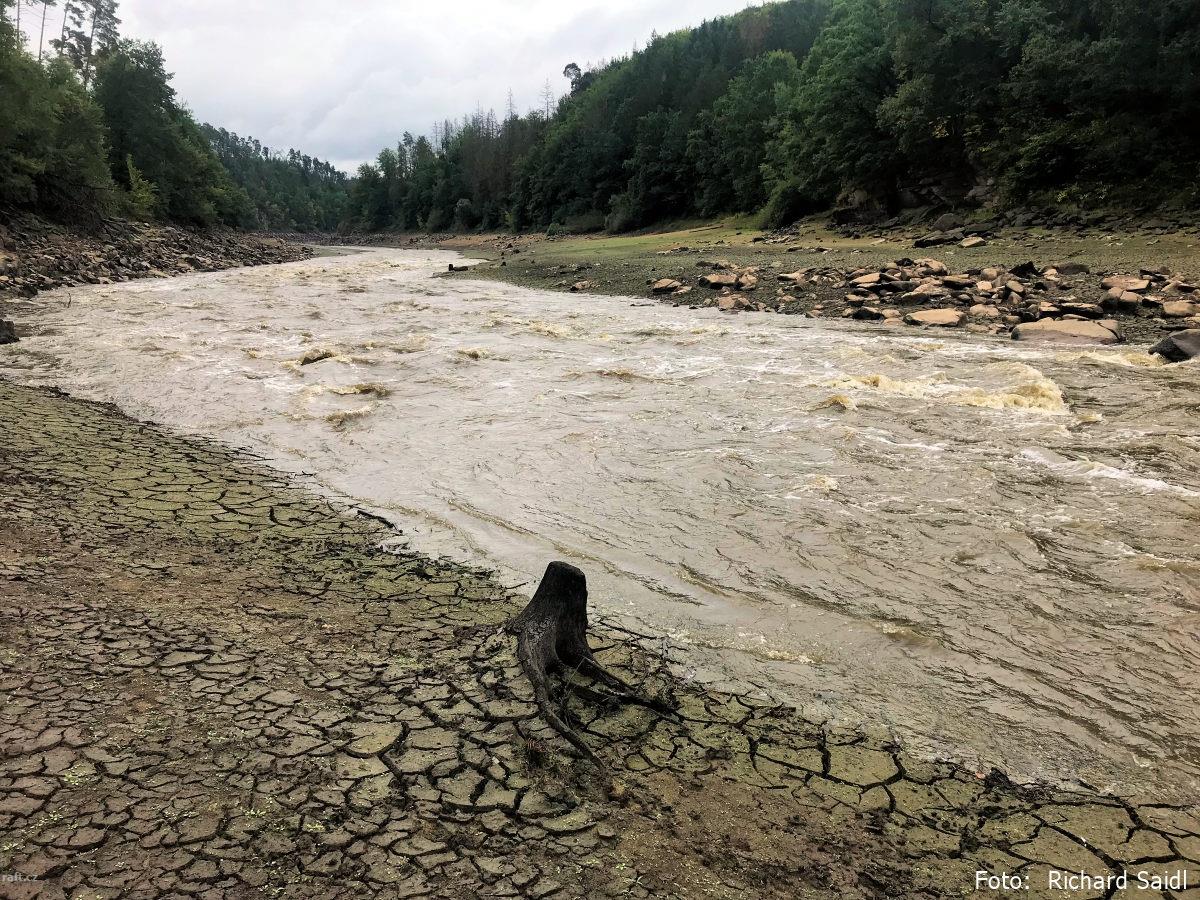 Aktuálně při mimořádně snížené hladině Orlíku kolem 338 m n. m. je tekoucí i dlouhý úsek Lomnice mez ...