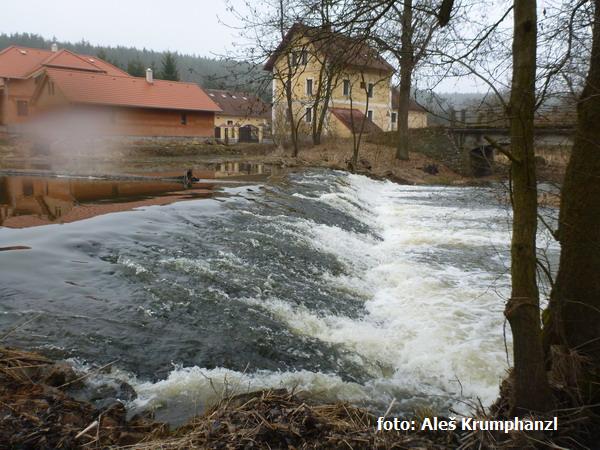 weir drop height (m) 0,6 navigable !! 1,1 km (GPS: 49.4244503,14.1072644) |