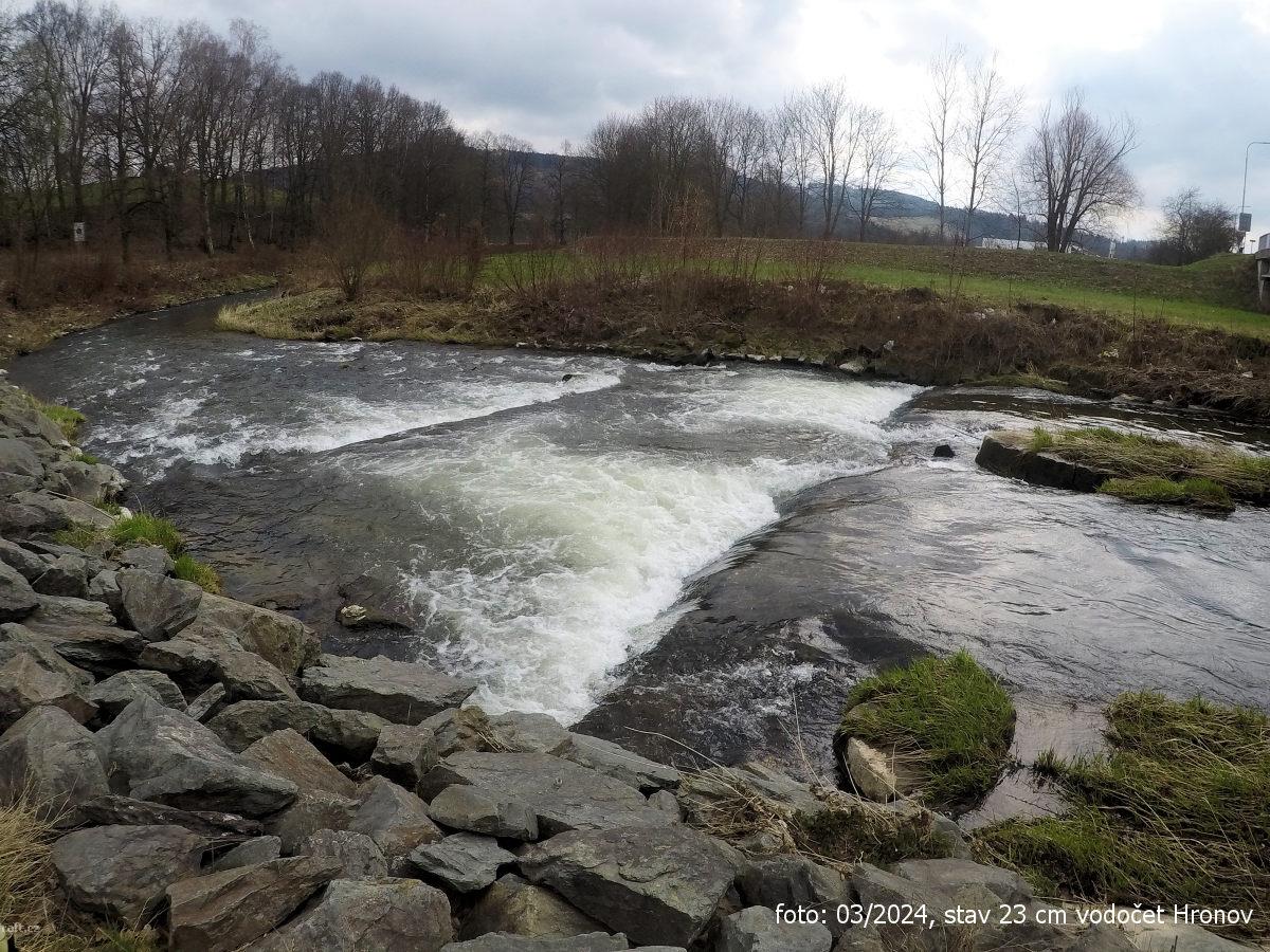 r.km 54,2 Jez u Velkých Petrovic, stav: 78 cm, 6.15 m3/s na vodočtu v Maršově