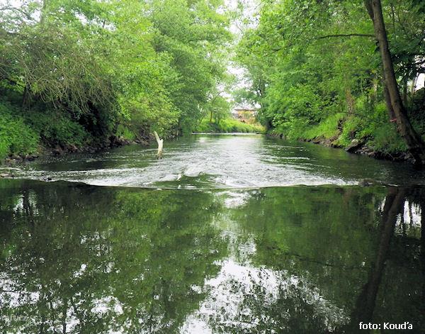 15.6.2013 úsek Kočov - Svojšín za stavu 100 cm ve Stříbře (50 cm Kočov), mezi Kočovem a ústím Tiché ...