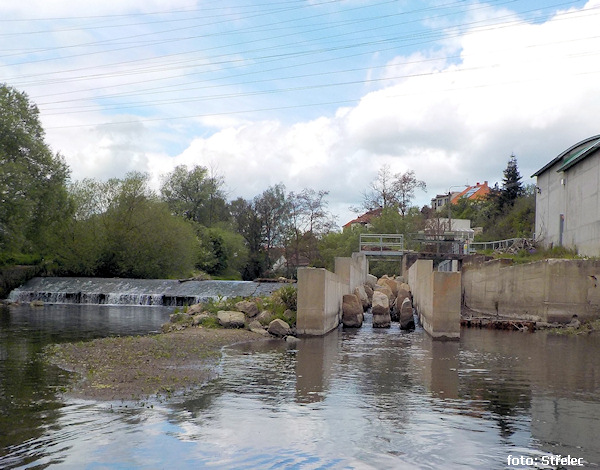 weir height (m) 1,0 canal left, Vrbice 1 km left and follows 800 m bridge footbridge 1,1 km |