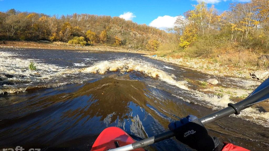 8.5.019 - pod žichovickým jezem to dře i prázdnou nafukovačku. Nepostrádá někdo loď? Asi 1,5 km nad ...